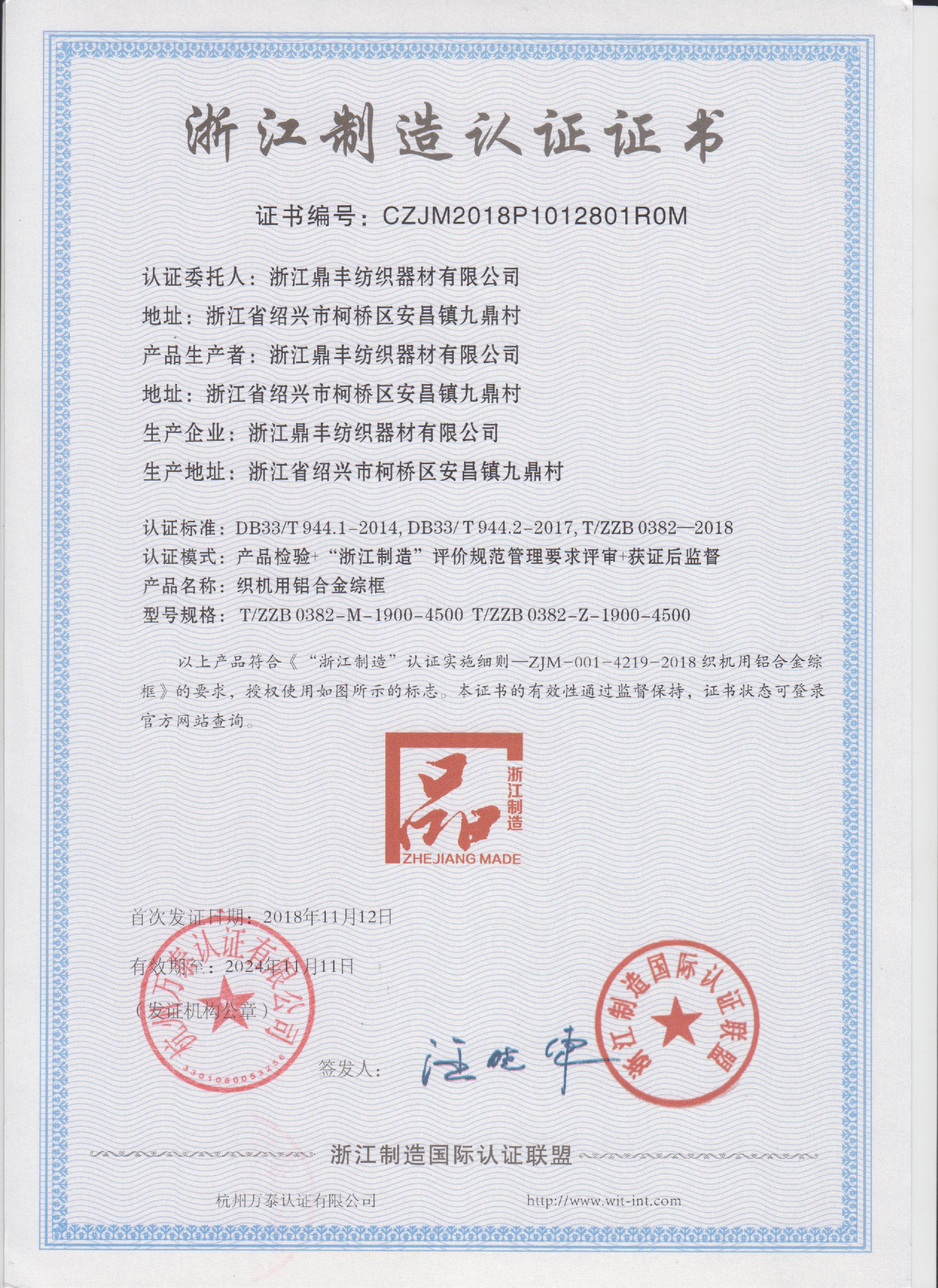 1、貴公司是一家專業(yè)生產(chǎn)各類無梭織機鋁合金鋼筘、綜框、鋼片綜、停經(jīng)片、經(jīng)軸、織軸和卷布輥等產(chǎn)品及配件的民營企業(yè)。公司成立30多年迅速發(fā)展、占領市場的秘決是什么?余定雅:是高品質的產(chǎn)品,完善的售后服務和大規(guī)模的生產(chǎn)能力保證了浙江鼎豐紡織器材有限公司的產(chǎn)品銷售量在國內獨占鰲頭。為了與全球市場經(jīng)濟接軌,鼎豐紡